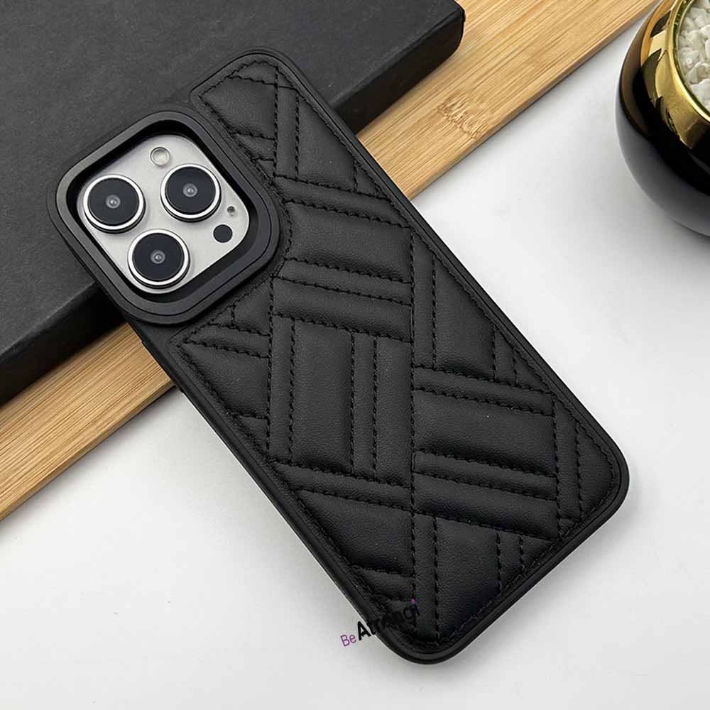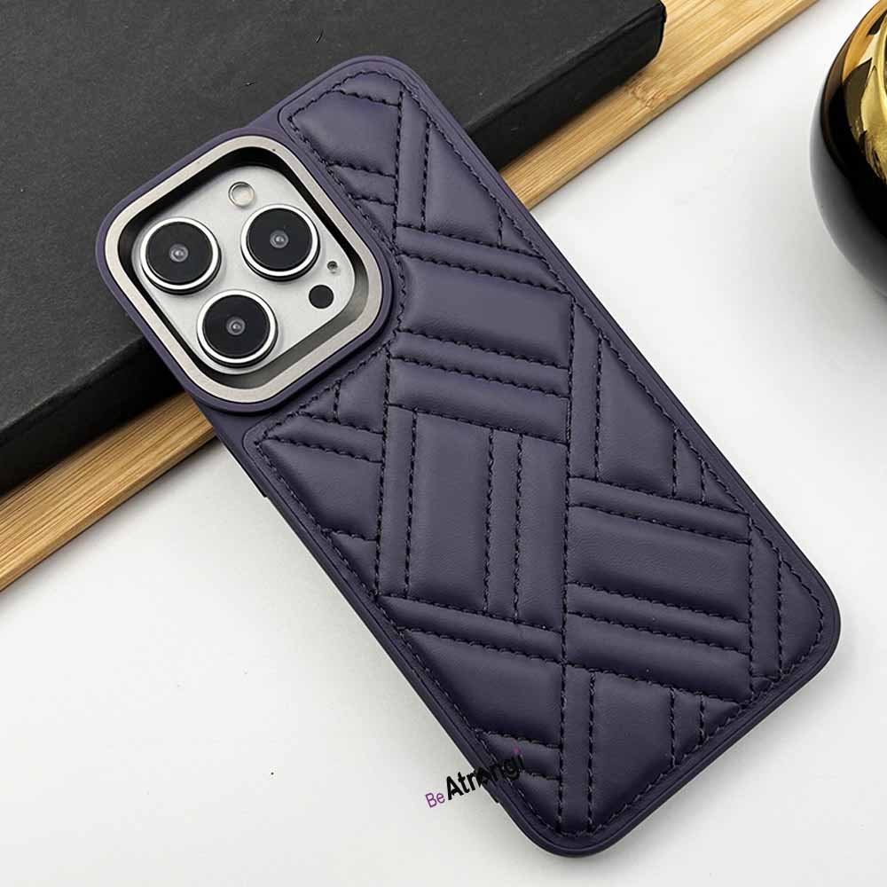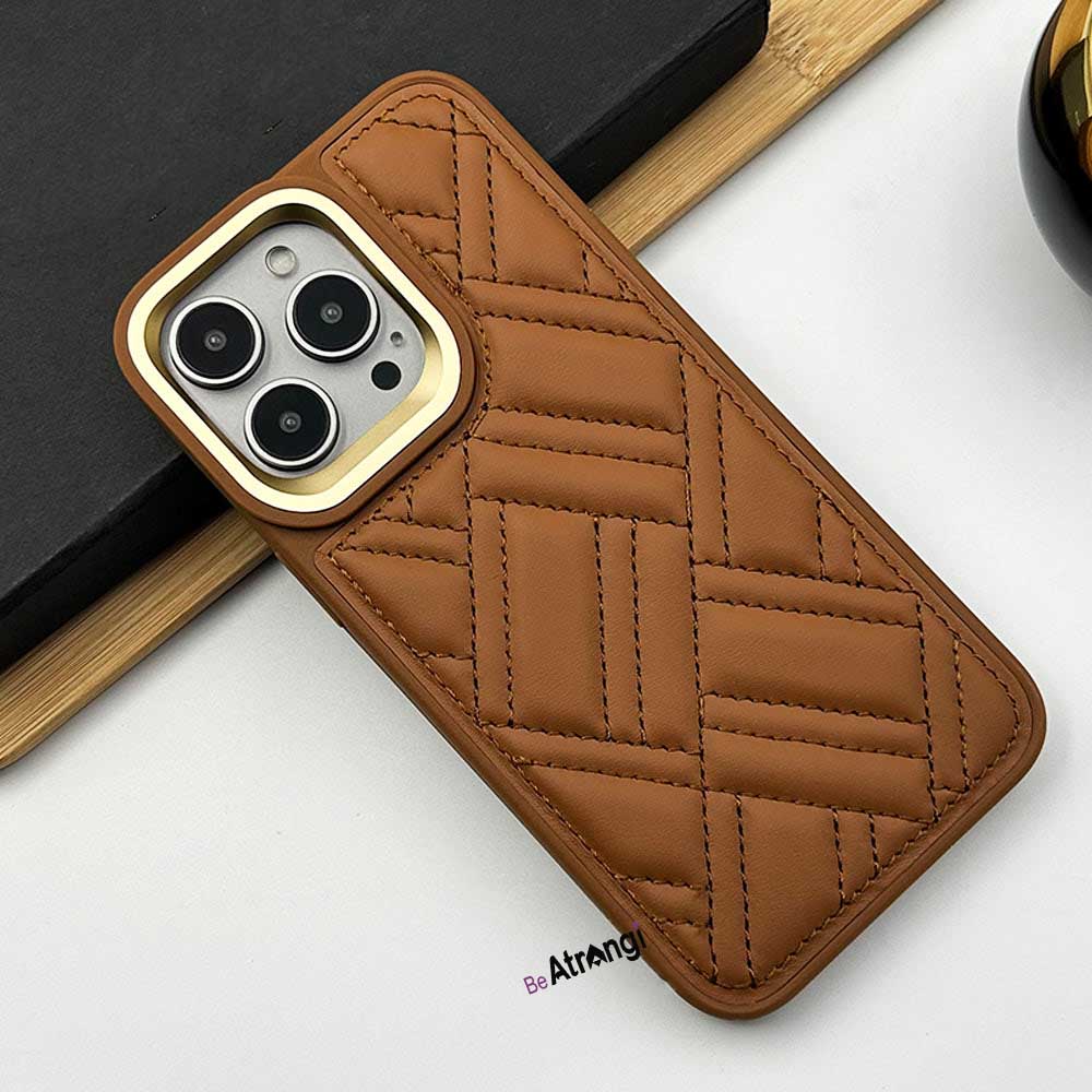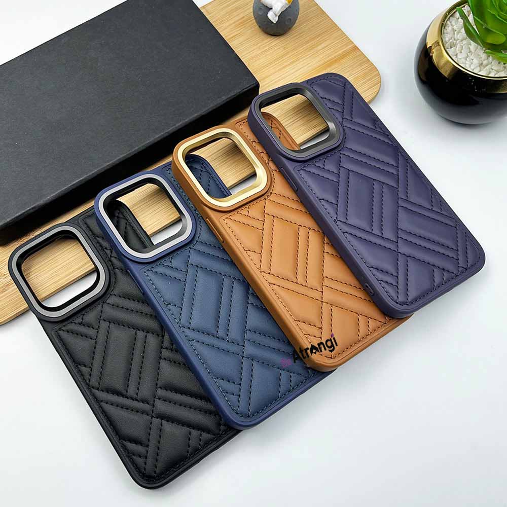 iPhone 15 Series Puffer Stitch Leather Metal Frame Case Cover