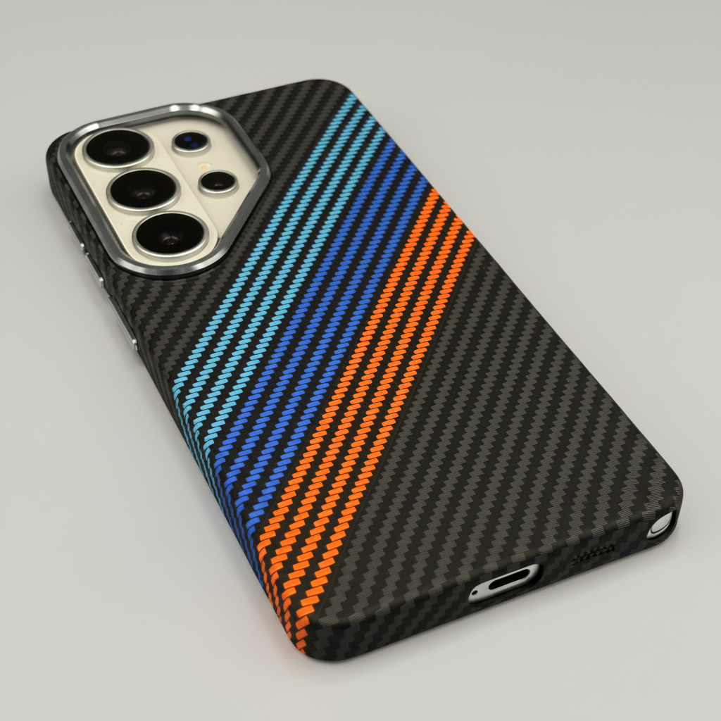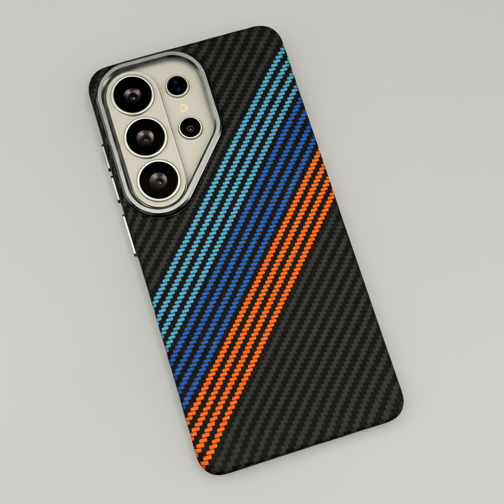 Give your Samsung Galaxy S26 Ultra sporty style and everyday protection with this Carbon Fibre Racing Stripe Case — a premium magnetic cover featuring a sleek racing stripe design and hidden MagSafe compatibility.