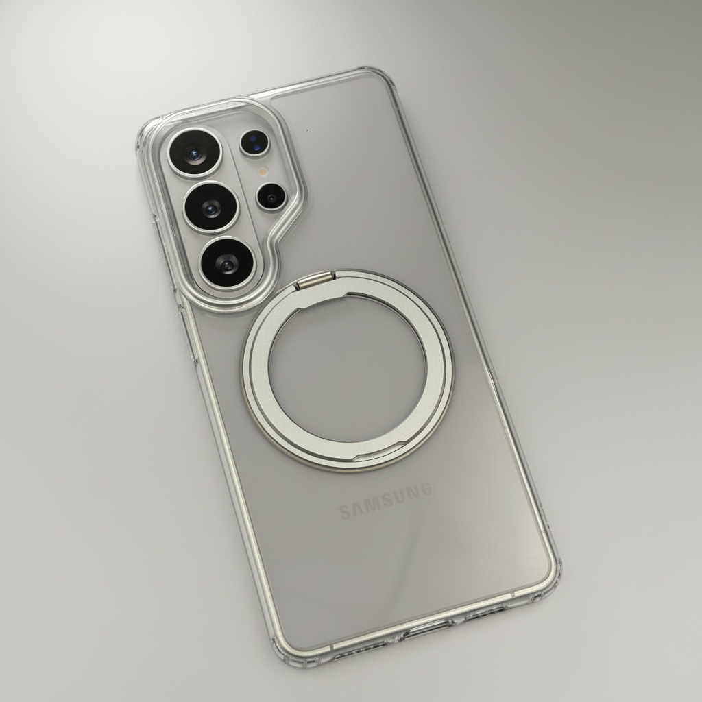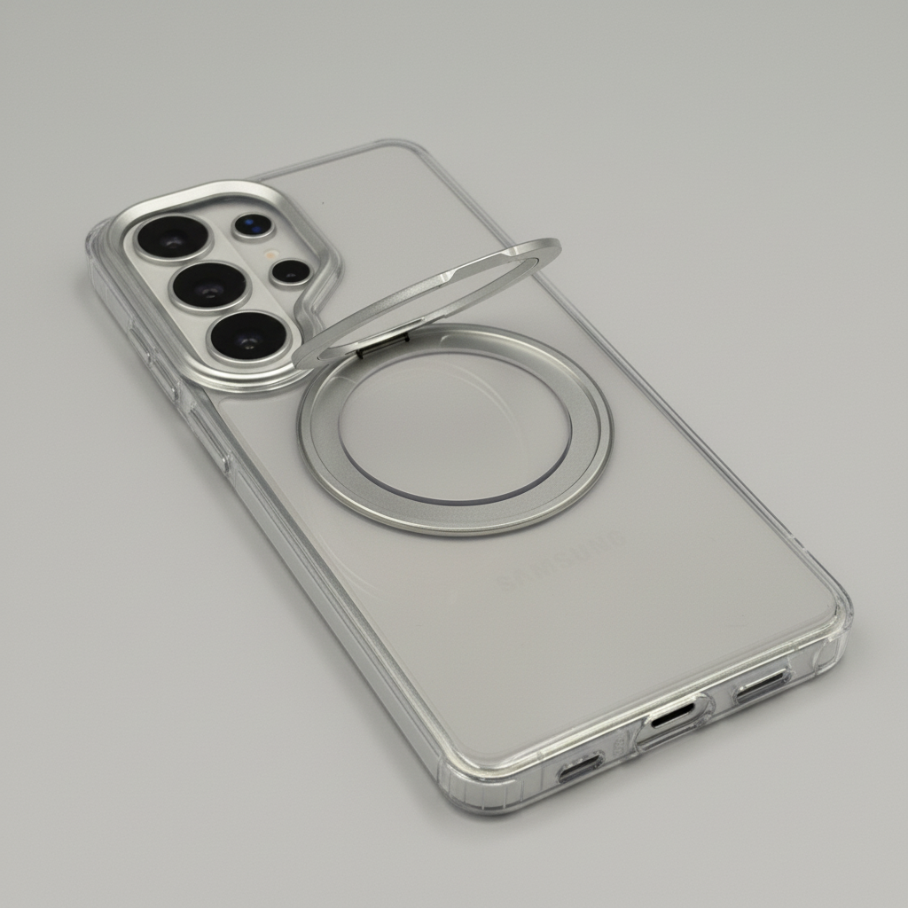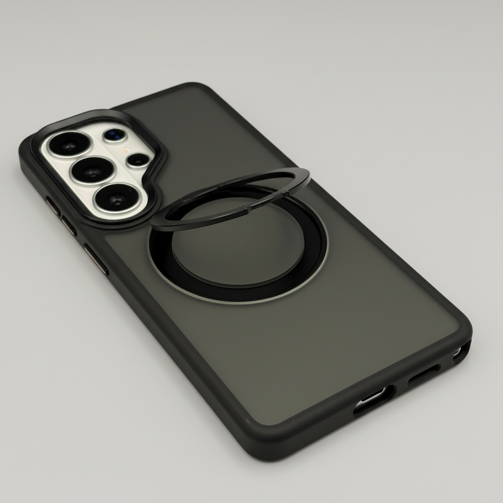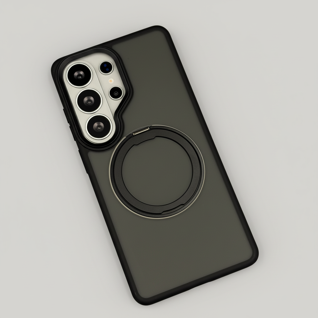 Upgrade your Samsung Galaxy S26 Ultra with this Smokey Rotating Stand MagSafe Case — a stylish translucent protective cover featuring a 360° rotating metal stand and MagSafe compatibility for everyday convenience.