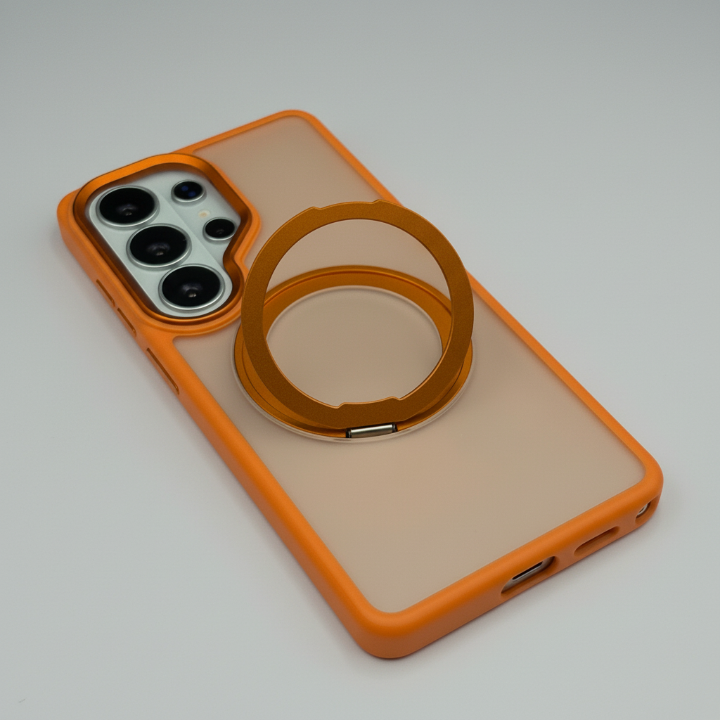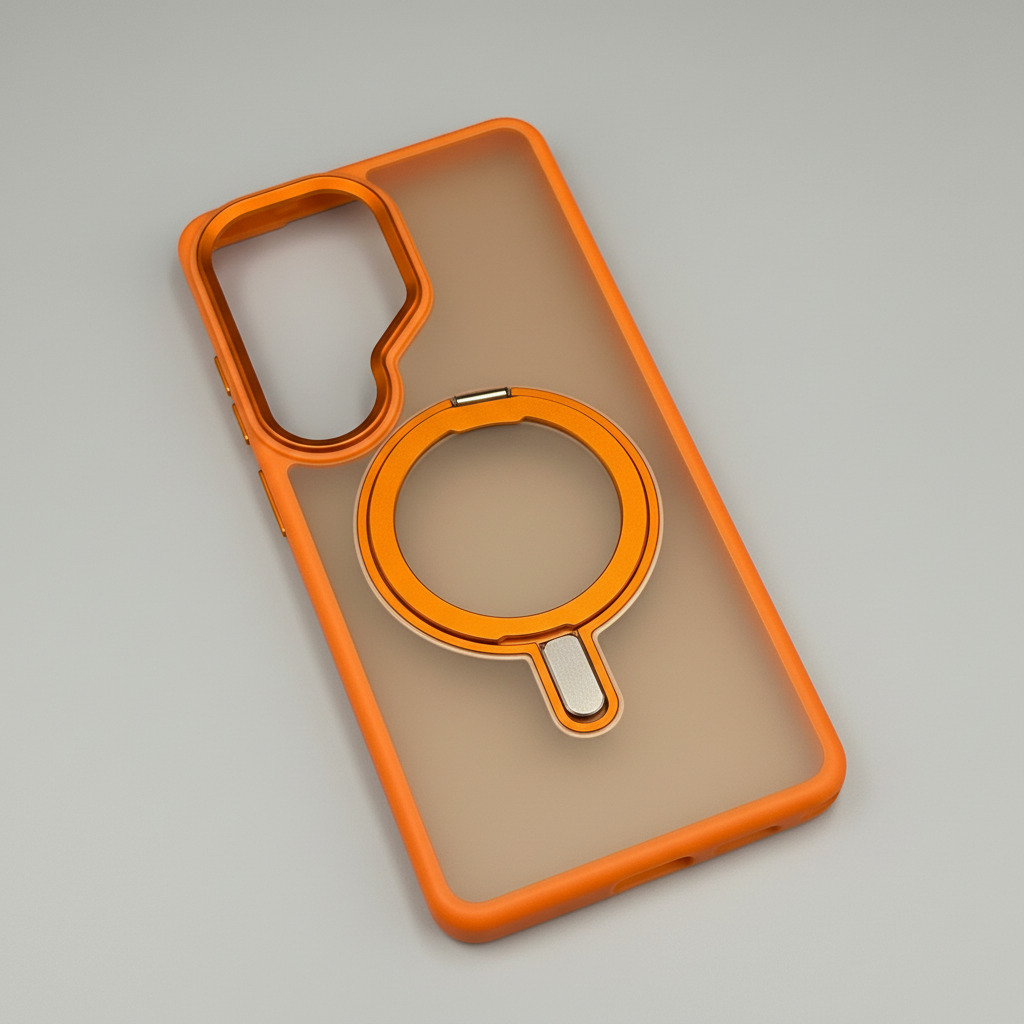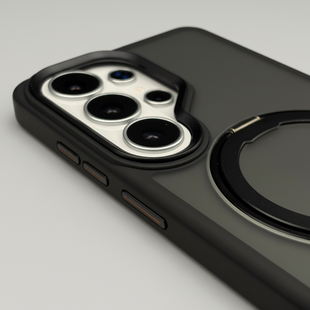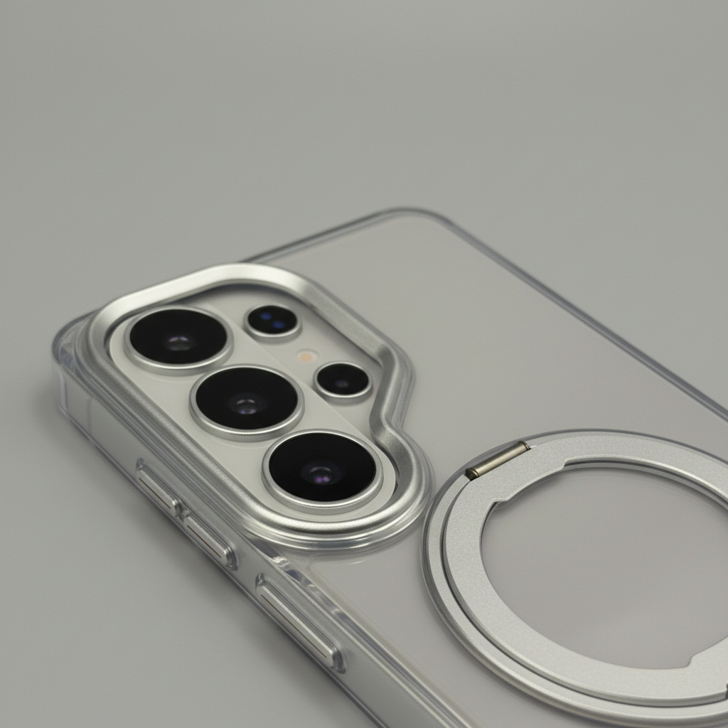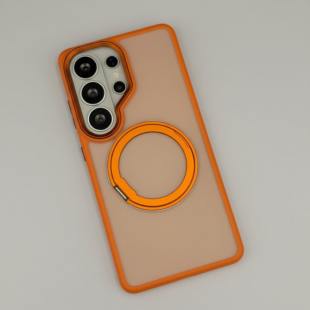 Upgrade your Samsung Galaxy S26 Ultra with this Smokey Rotating Stand MagSafe Case — a stylish translucent protective cover featuring a 360° rotating metal stand and MagSafe compatibility for everyday convenience.