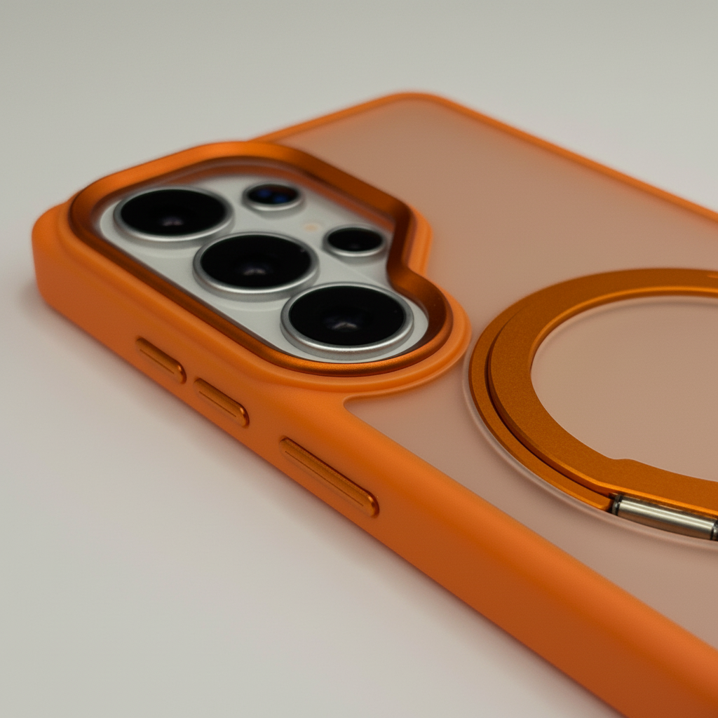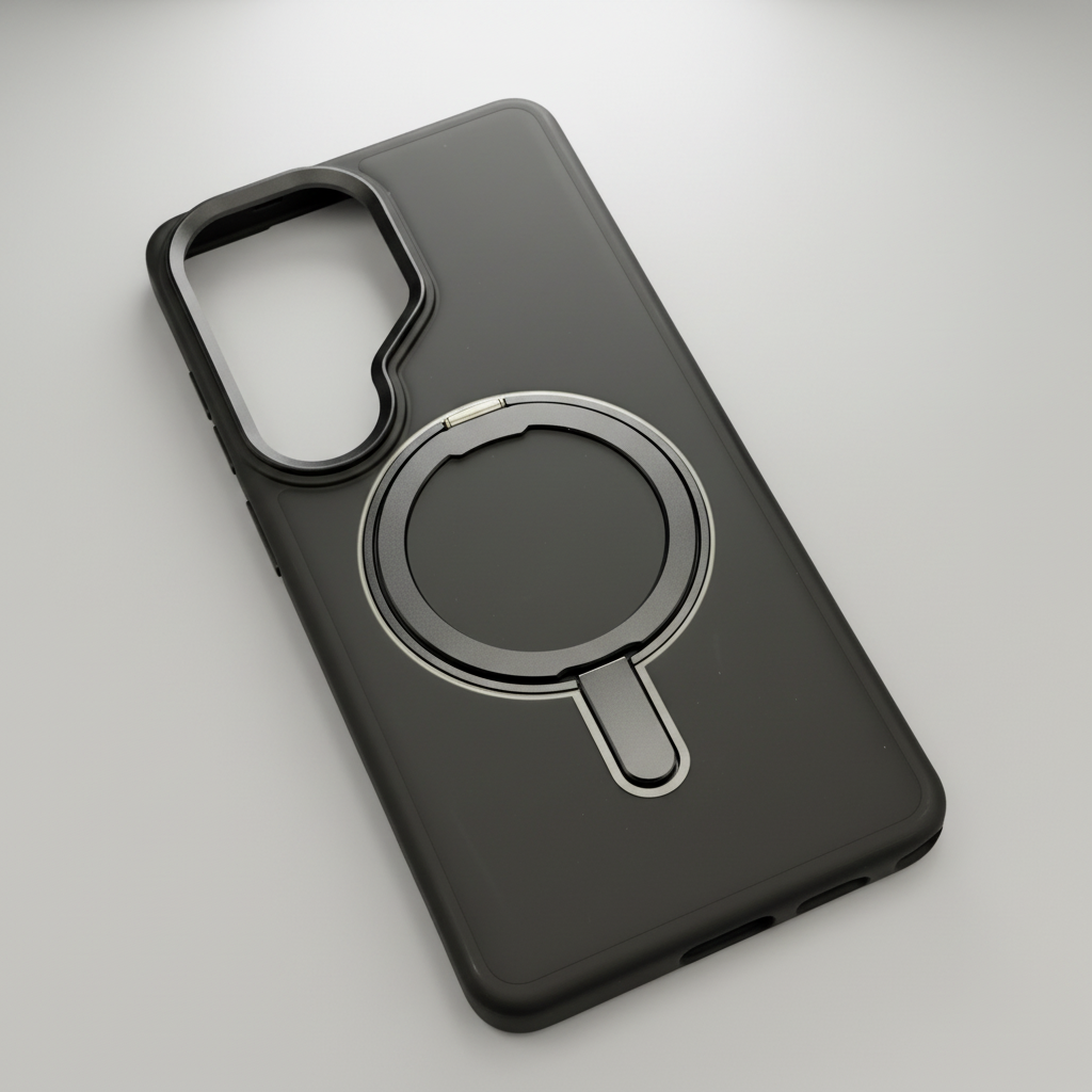 This Galaxy S26 Ultra mobile case delivers dependable defence against bumps, scratches, and daily wear while showcasing your phone’s sleek look through a smokey translucent finish. The built-in rotating metal stand lets you enjoy hands-free viewing at multiple angles — ideal for video calls, streaming, and browsing. With MagSafe-ready magnets, you get secure magnetic alignment with MagSafe chargers and accessories for fast wireless charging without removing the case.