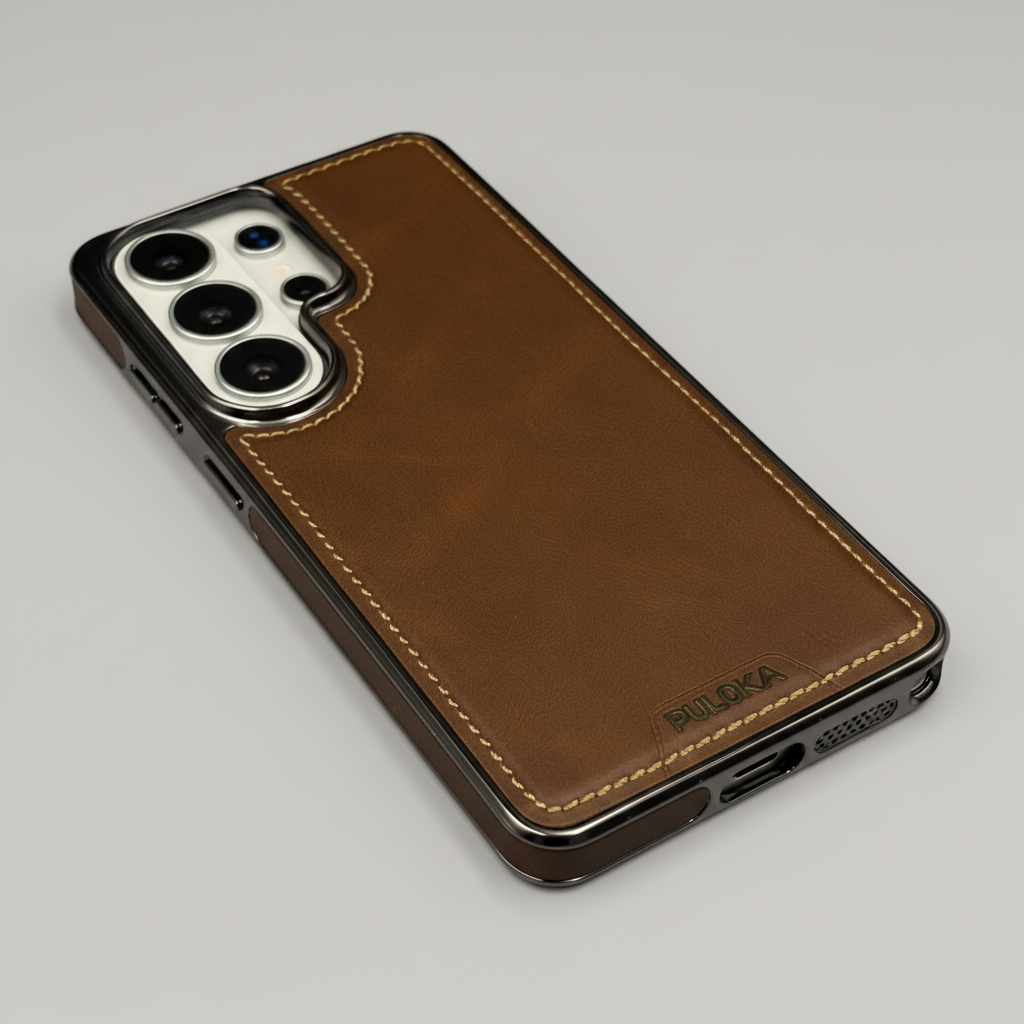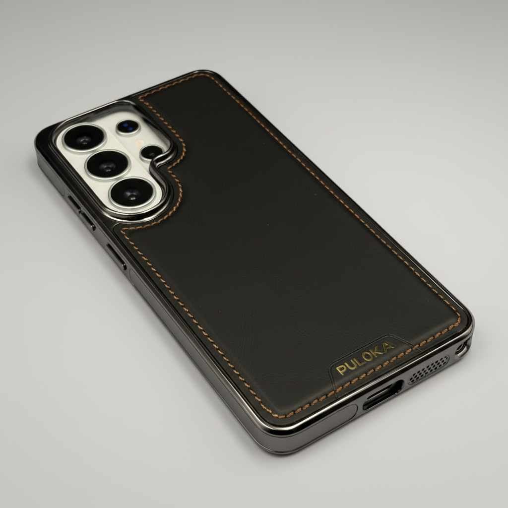 Give your Samsung Galaxy S26 Ultra a premium upgrade with this Stitch Leather Hidden MagSafe Case — a chrome-trim luxury protective cover designed for everyday use with magnetic wireless convenience.