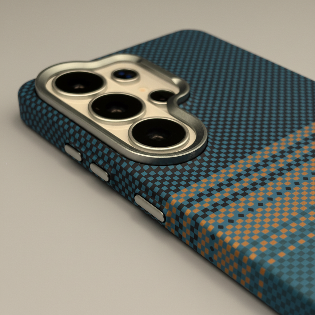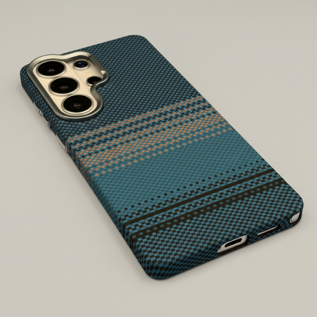 Protect and elevate your Samsung Galaxy S26 Ultra with this Teal Stripe Case — a premium protective cover featuring a sleek carbon fibre feel texture and hidden MagSafe compatibility for secure magnetic wireless charging.