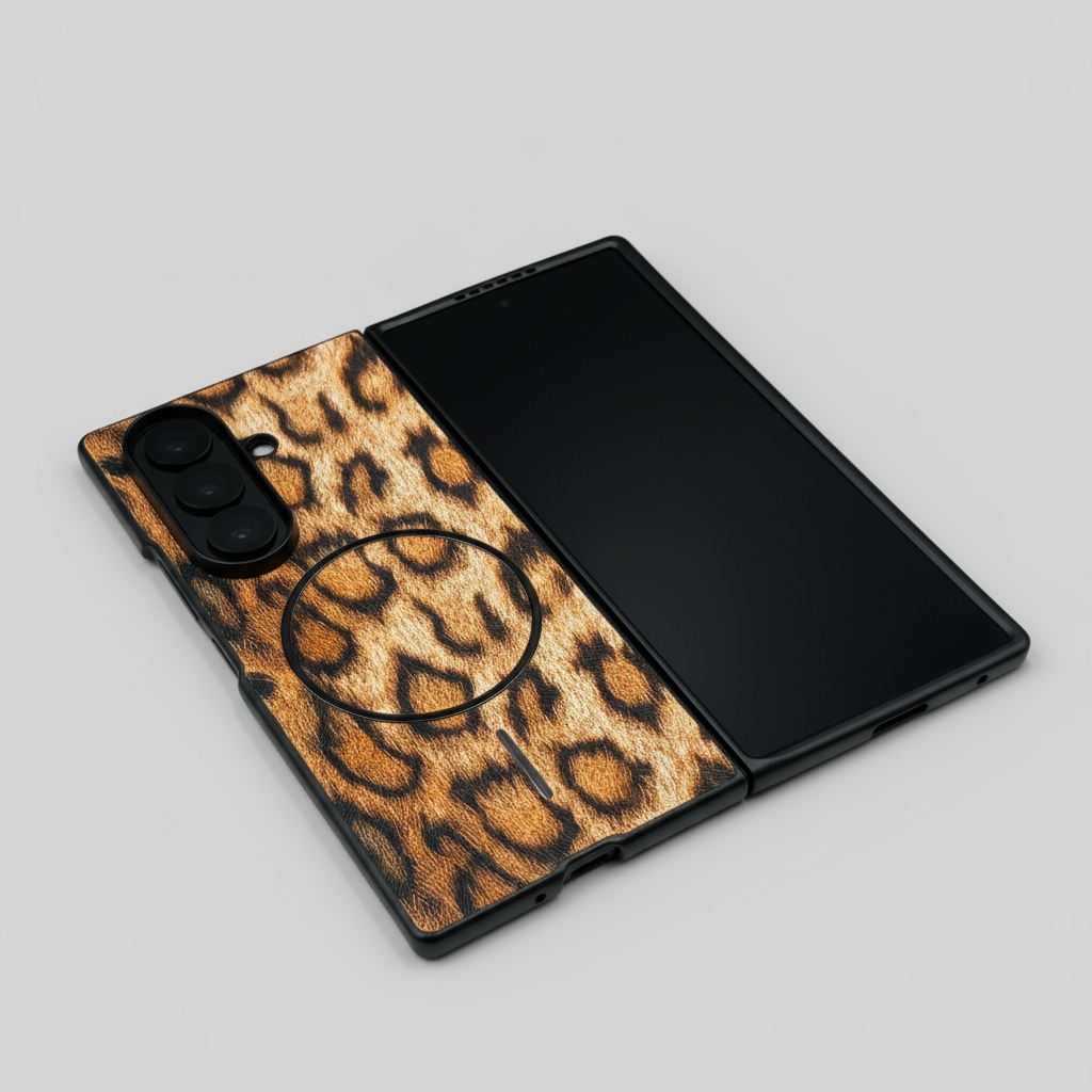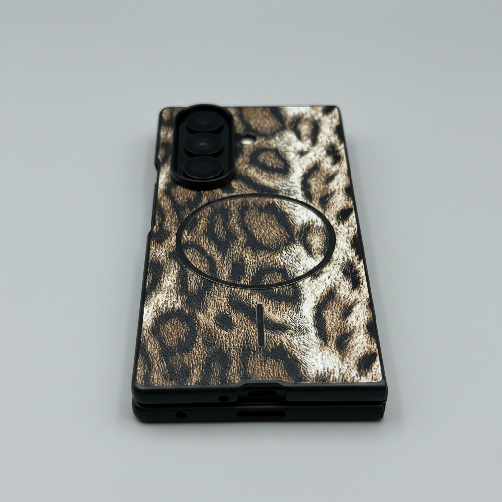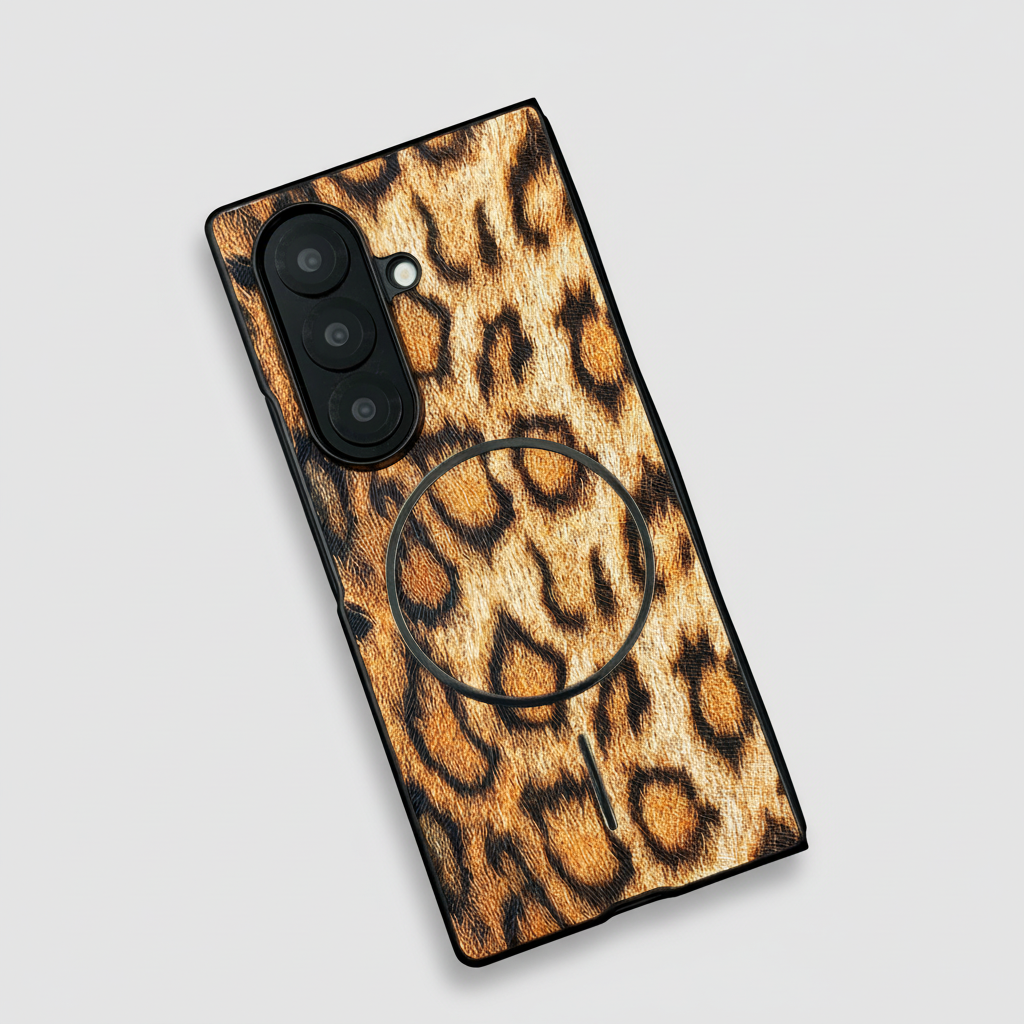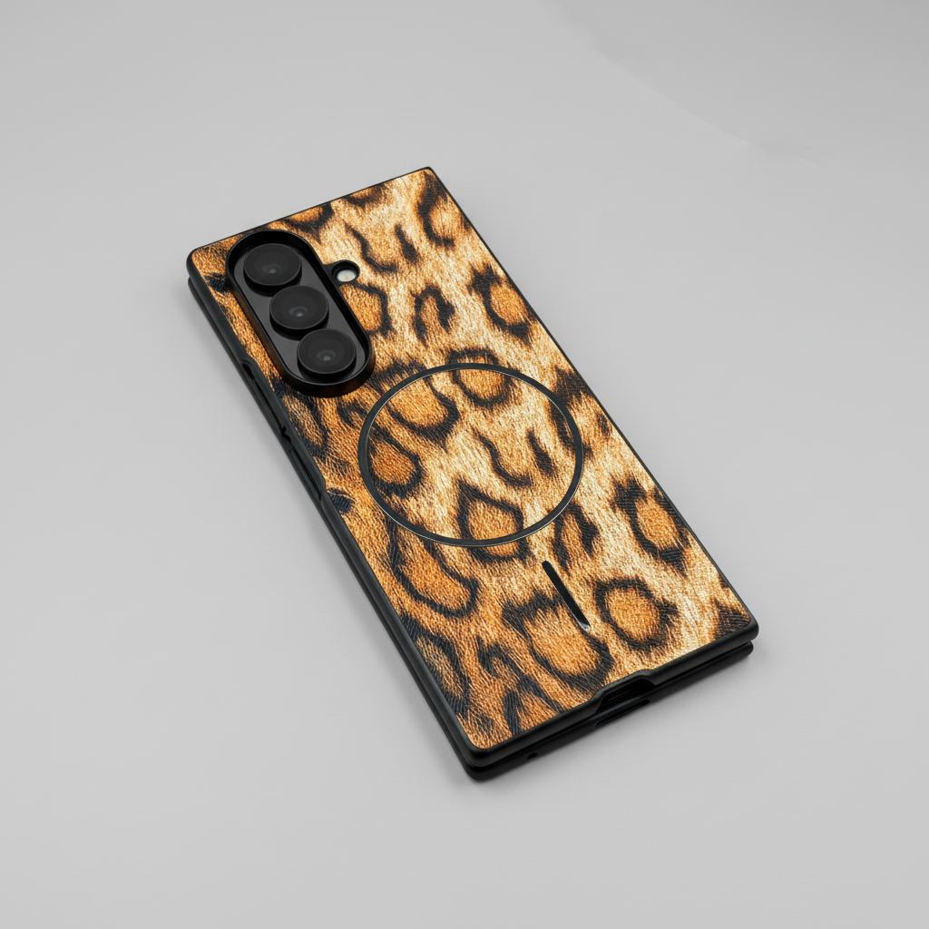 Crafted with high-quality PU leather and eye-catching leopard print design, this Galaxy Z Fold 7 mobile case adds vibrant style while providing dependable protection against bumps, scratches, and daily wear. The MagSafe compatible build supports secure magnetic alignment with MagSafe chargers and accessories for effortless wireless charging without removing the case.
