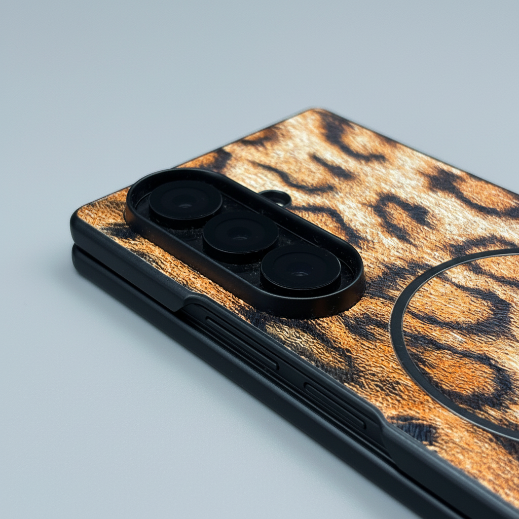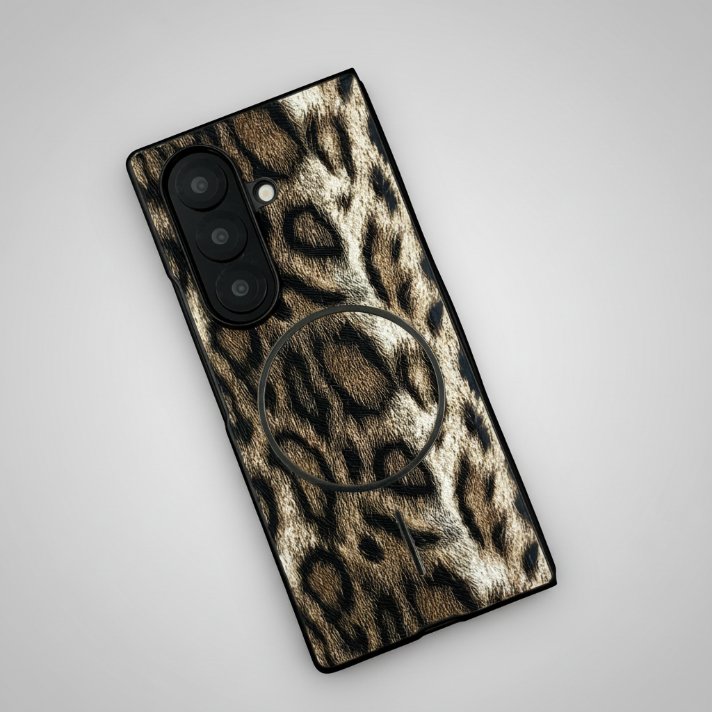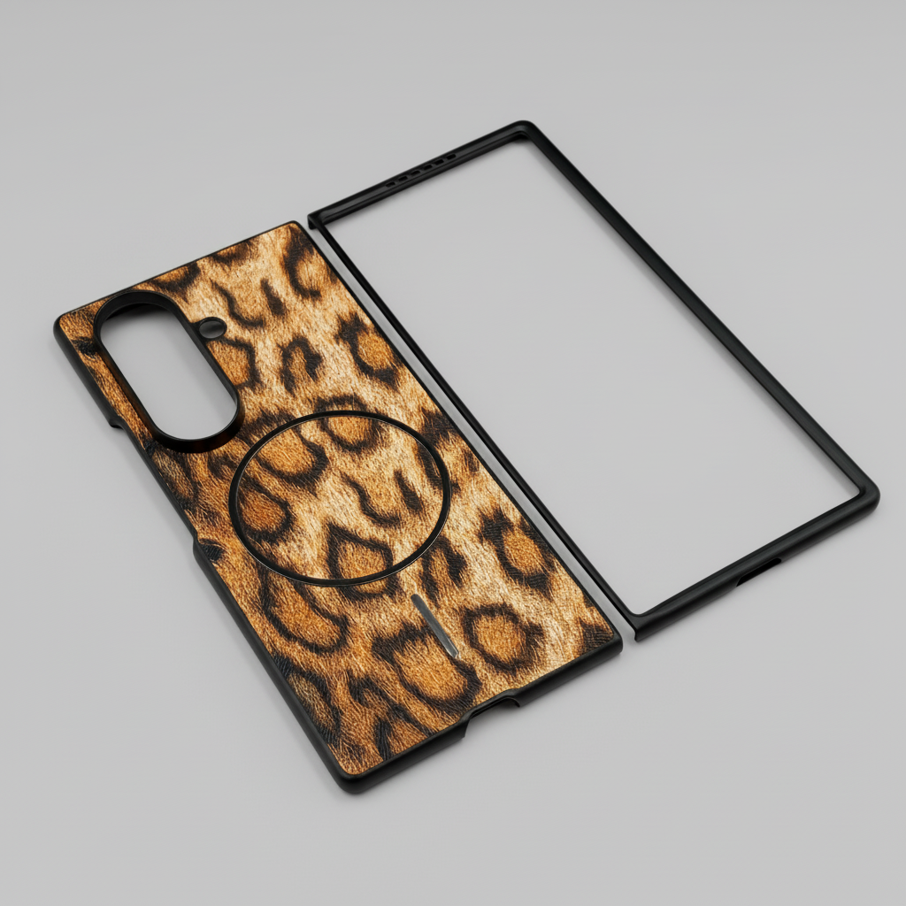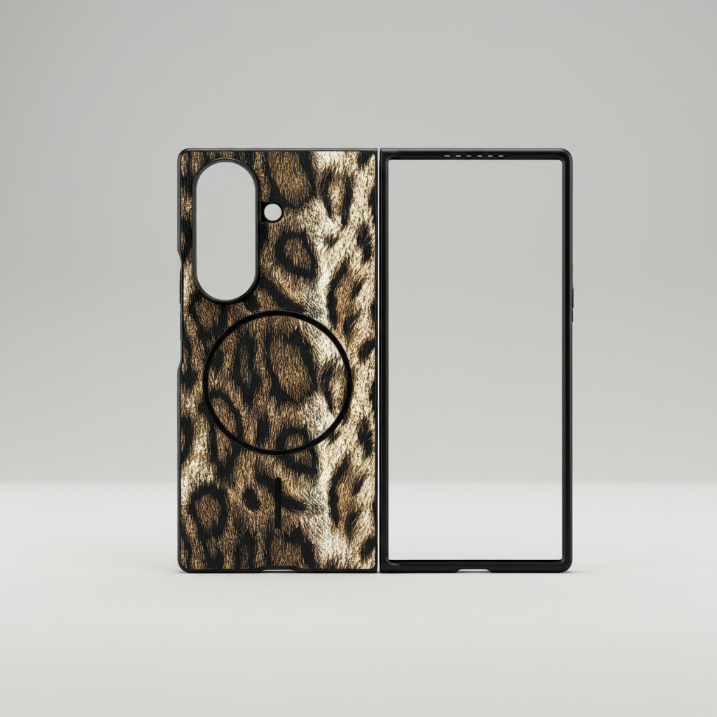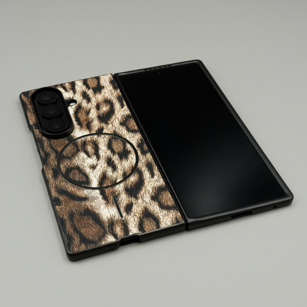 Crafted with high-quality PU leather and eye-catching leopard print design, this Galaxy Z Fold 7 mobile case adds vibrant style while providing dependable protection against bumps, scratches, and daily wear. The MagSafe compatible build supports secure magnetic alignment with MagSafe chargers and accessories for effortless wireless charging without removing the case.