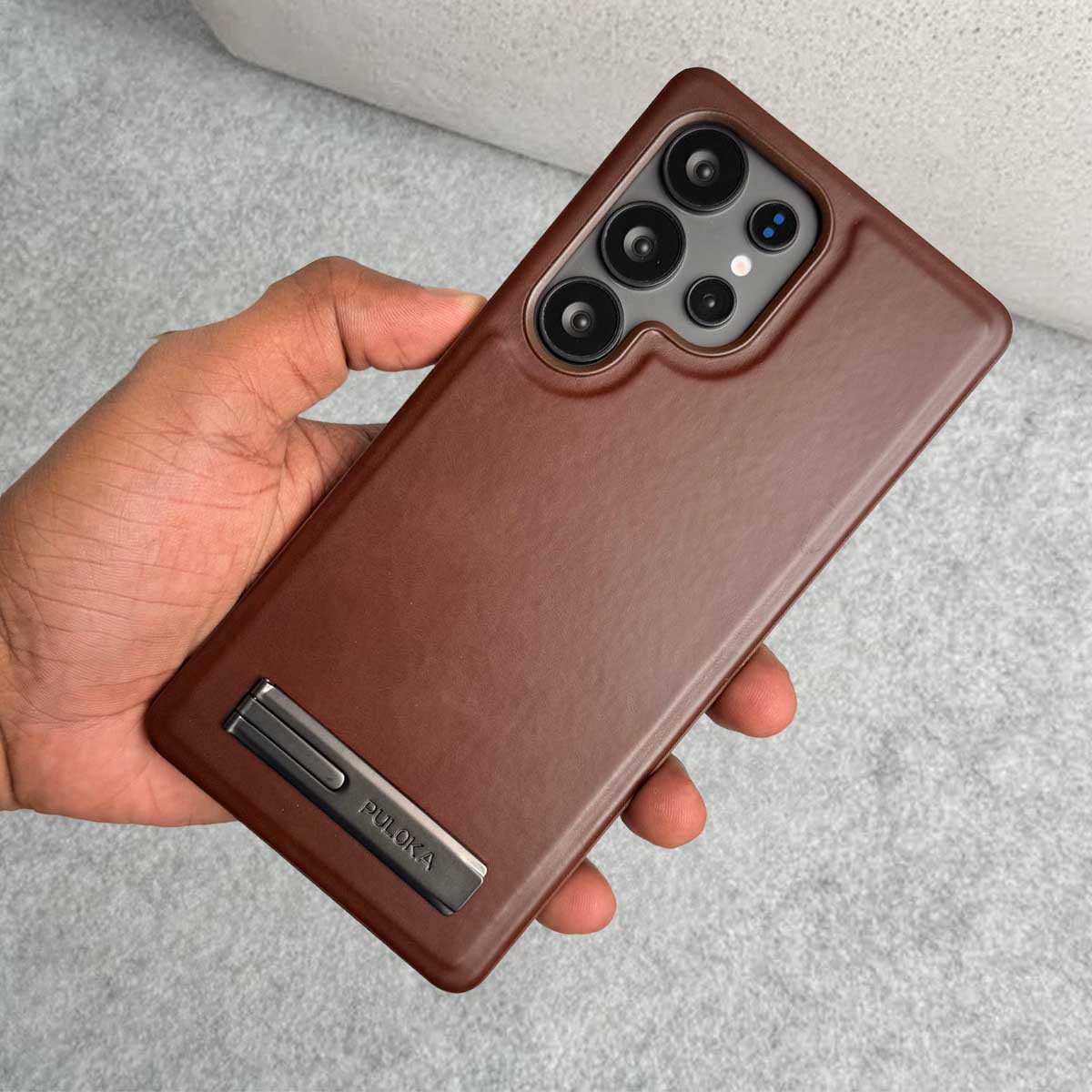 Samsung Galaxy S25 Ultra Leather Case – PU Flip Cover with Inbuilt Stand